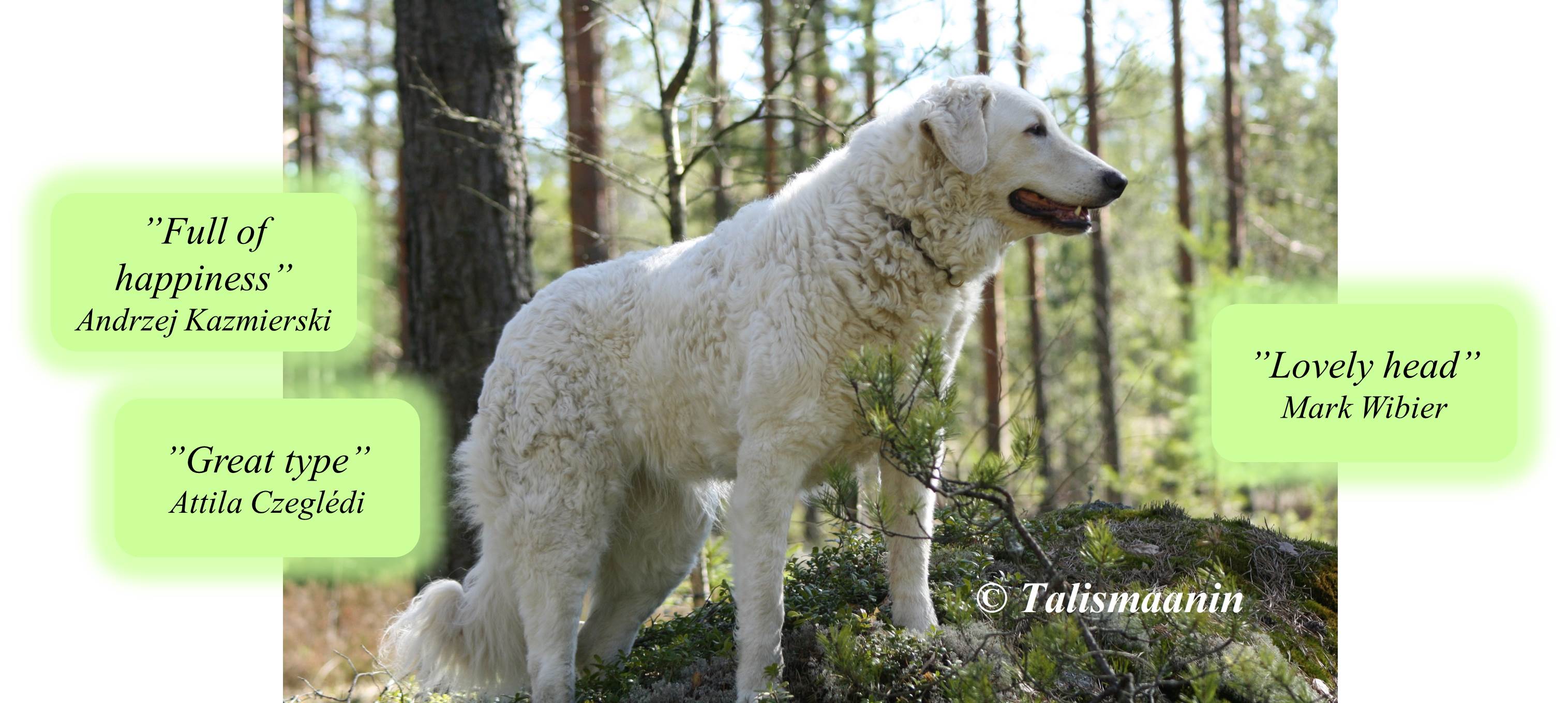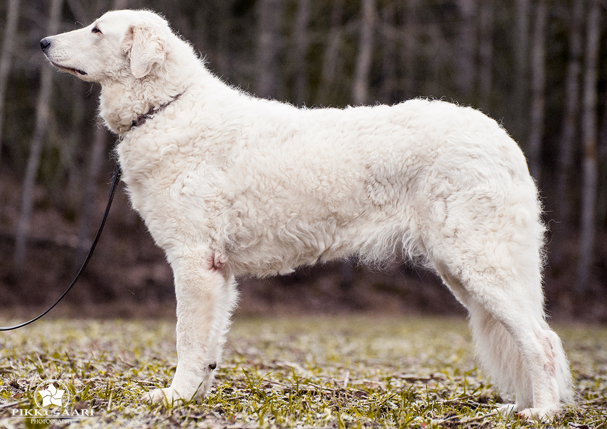2018: Ilona is the mother of our first kuvasz litter, born in August 2018, sired by our Bakari vom Quecksilber. She was excellent mother to her pups. Two puppies stayed in Finland (male "Braveheart" lives at home kennel) and one female puppy was exported to Germany, to the home kennel of Bakari (Vom Quecksilber). We have plans to breed with Ilona again in 2020, a rare and highly interesting combination, and waiting to keep from that litter. Ilona is our foundation female for kuvasz breeding with Hungarian/Serbian/German bloodlines.