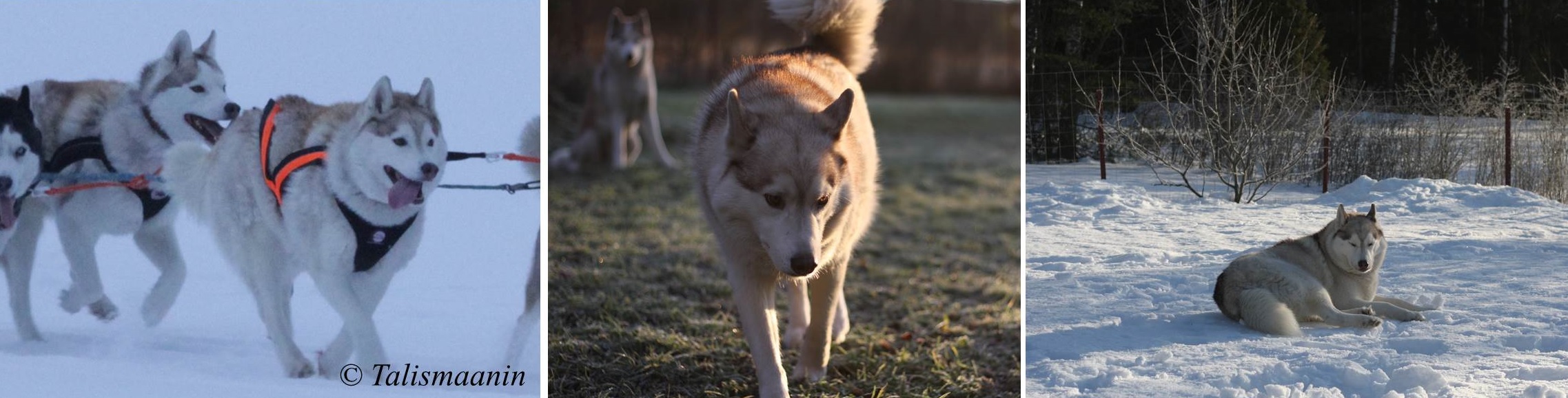 Kusti was born in kennel Sleigh Ride's G-litter, which shared the same parents with F-litter born year before. The light red huskies of these litters have gained lots of show success.