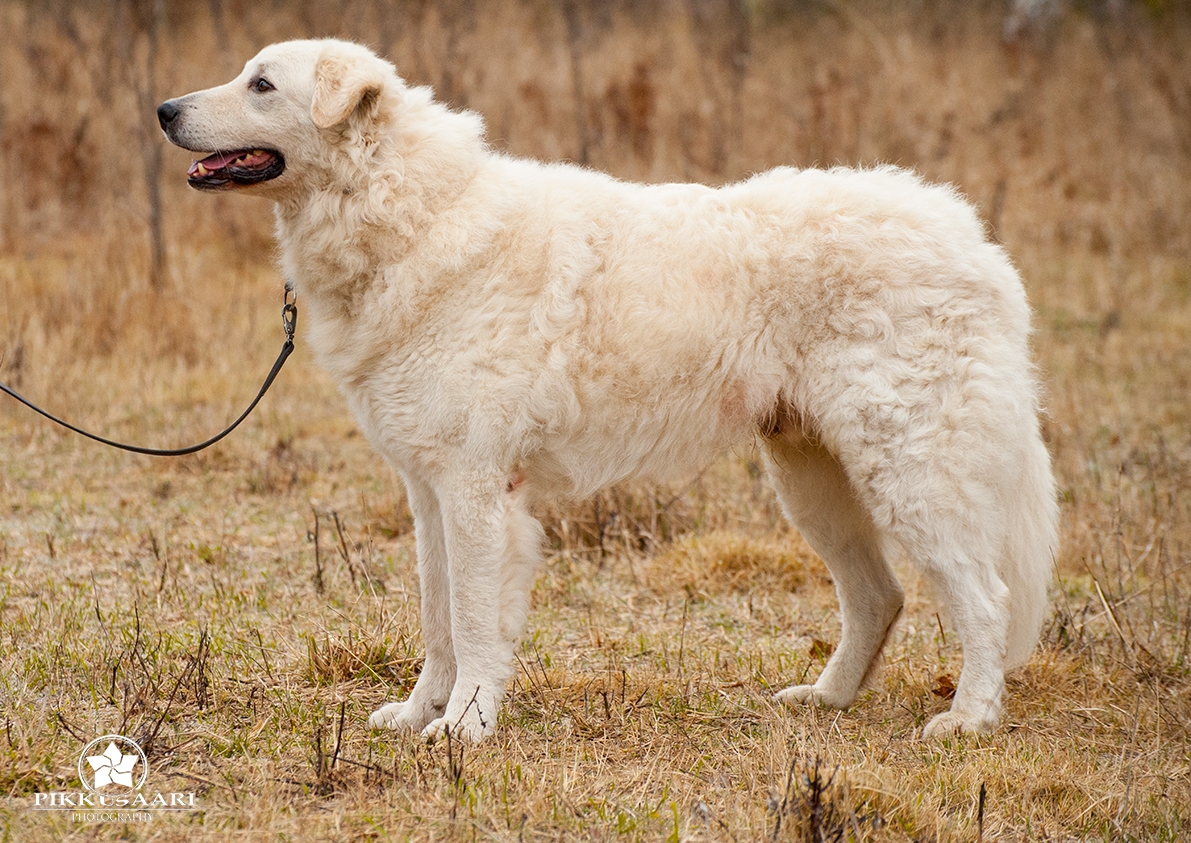 Haaveilin jokseenkin pitkään kuvaszista. Vuonna 2014 unelma toteutui! Mielestäni kuvasz on kaunein rotu isoista valkoisista. Mikä ehkä tärkeintä, sen liike on upeaa, puhdasta ja ketterää, se juoksee vaivattomasti. Minulle on erittäin tärkeää säilyttää kuvaszin rotumääritelmän mukainen ulkomuoto: kolmion muotoinen pää, tummat mantelisilmät, selvä sukupuolileima, josta ei voi erehtyä, sopiva korkeus (suhteessa pituuteen), urosten upea harja ("leijonanharja"), ei liian isoja korvia...